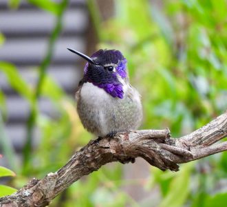 A rather rainy January was brightened by the discovery of a young male COSTA’S HUMMINGBIRD, the first in the county in three winters, in a north Davis backyard on 1/5 (JR). The bird has been frequenting a backyard feeder and continues to be enjoyed by observers almost daily. Upon its initial report, the Costa’s had a patchy, incomplete gorget characteristic of an immature. But in the weeks that followed it has molted in a full adult gorget, turning into a stunning purple gem.
